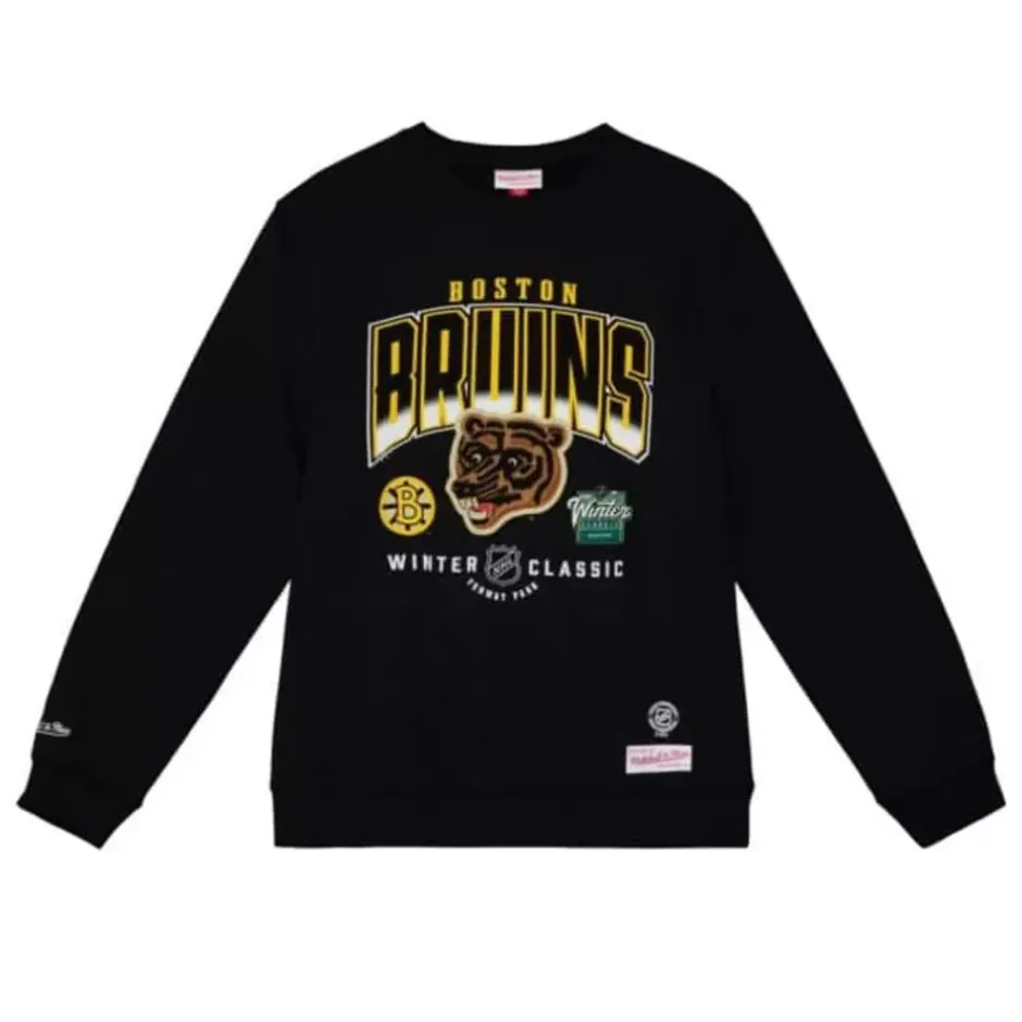 Men Mitchell & Ness T-Shirts & Tops-Winter Classic Logo Fade Crew Boston Bruins