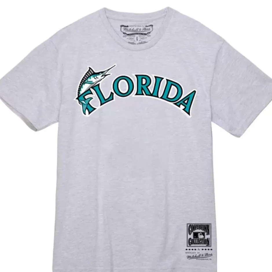 Men Mitchell & Ness T-Shirts & Tops-Wordmark 1 Tee Florida Marlins
