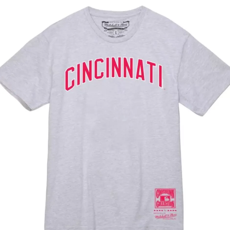 Men Mitchell & Ness T-Shirts & Tops-Wordmark 2 Tee Cincinnati Reds