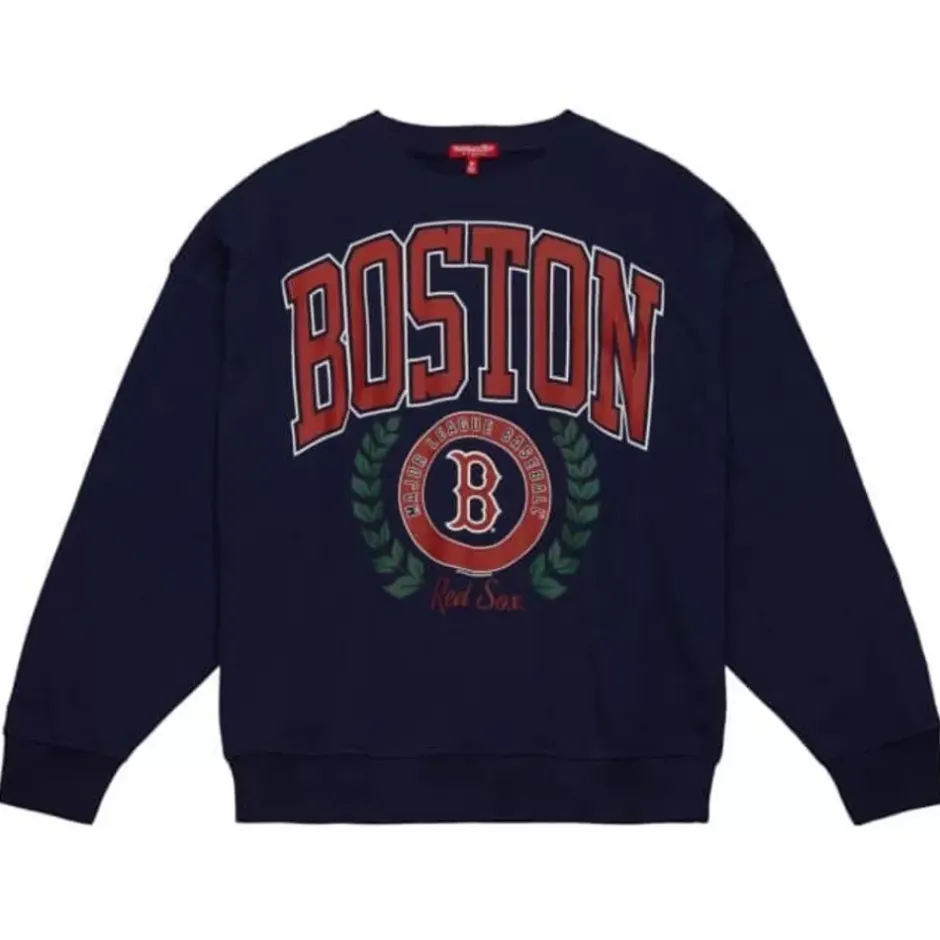 Woman Mitchell & Ness Hoodies & Sweatshirts-Womens Logo Lt Crew 2.0 Boston Red Sox