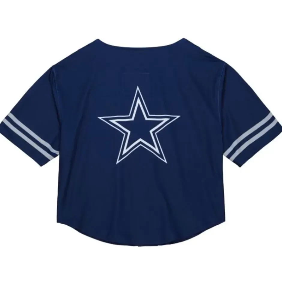 Woman Mitchell & Ness T-Shirts & Tops-Women’S Ss Button Crop Dallas Cowboys