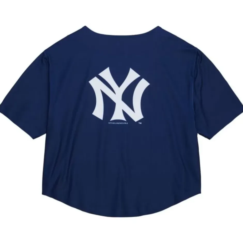 Woman Mitchell & Ness T-Shirts & Tops-Women’S Ss Button Crop New York Yankees